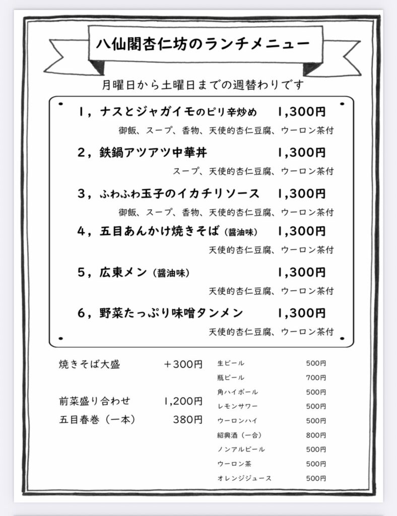 毎週5種類以上、定食・チャーハン・麺類とバラエティー富んだメニューでお待ちしております。