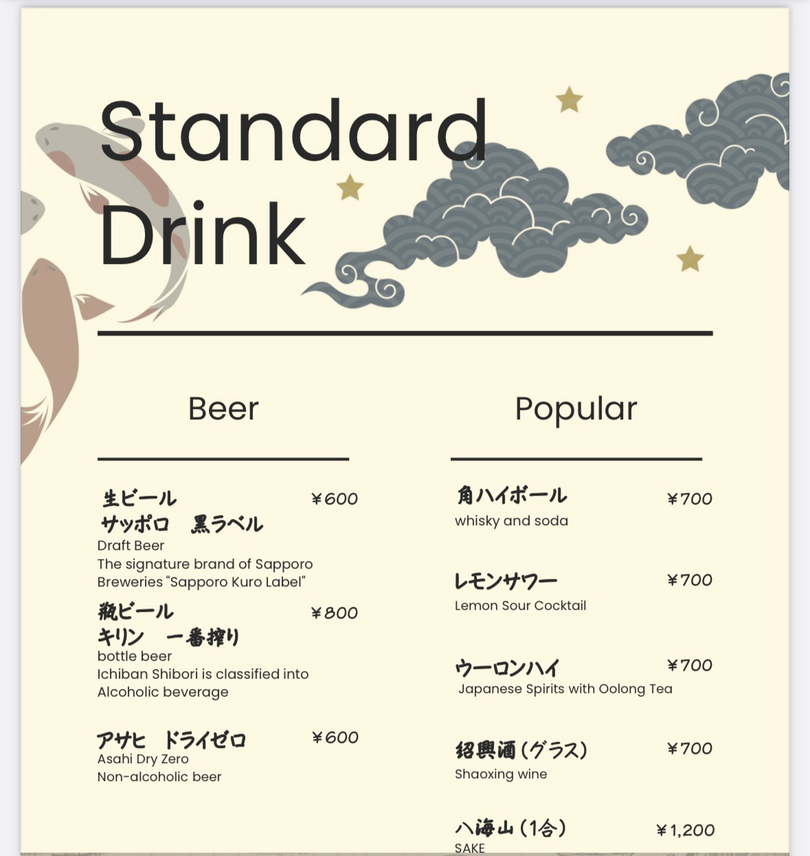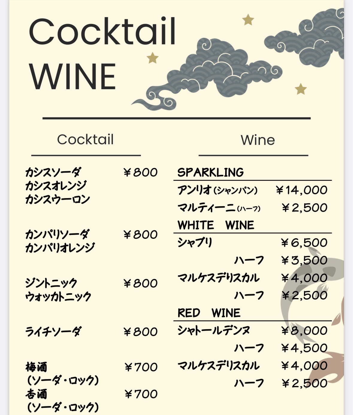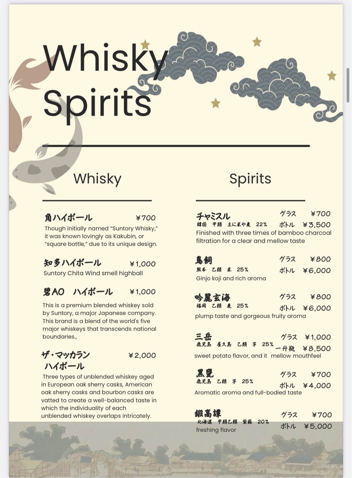 一合700円 ボトル4,000円